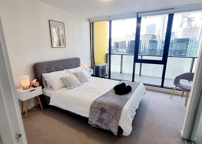 60m²のOne- Bedroom City Retreat With Amazing Views And Free Parking メルボルンアパートはSea Life メルボルン水族館から歩いてたった11分で、フィッツロイ・ガーデンズから2.6キロメートルの距離の場所にあります。 プールを提供するホテルは、クラウンカジノ&娯楽施設数歩の距離です。